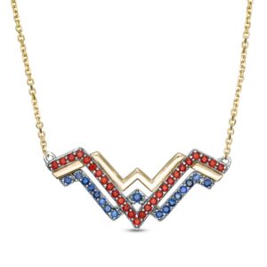Garnet and Blue Sapphire Symbol Necklace in 10K Gold
