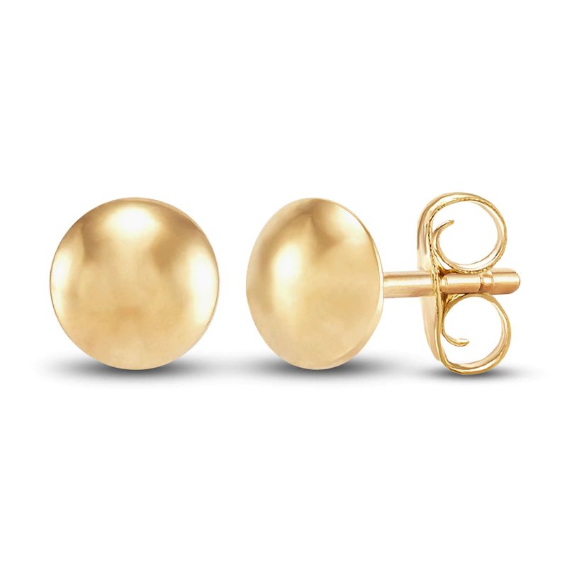 This ready-to-gift boxed set for her features three pairs of gorgeous earrings styled in iconic 10K yellow gold. The two pairs of hoop earrings, one smooth and the other embellished with intricate etching detail, secure with snap-lock backs. The stud earrings secure with friction backs.