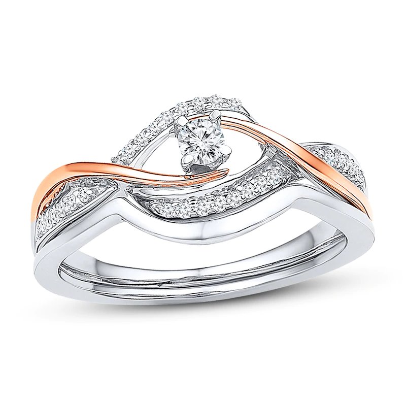 Promise Ring 1/5 ct tw Diamonds Sterling Silver/10K Rose Gold