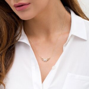 1/6 CT. T.W. Diamond Rose and Heart Pendant in Sterling Silver and 10K Rose Gold – 19″